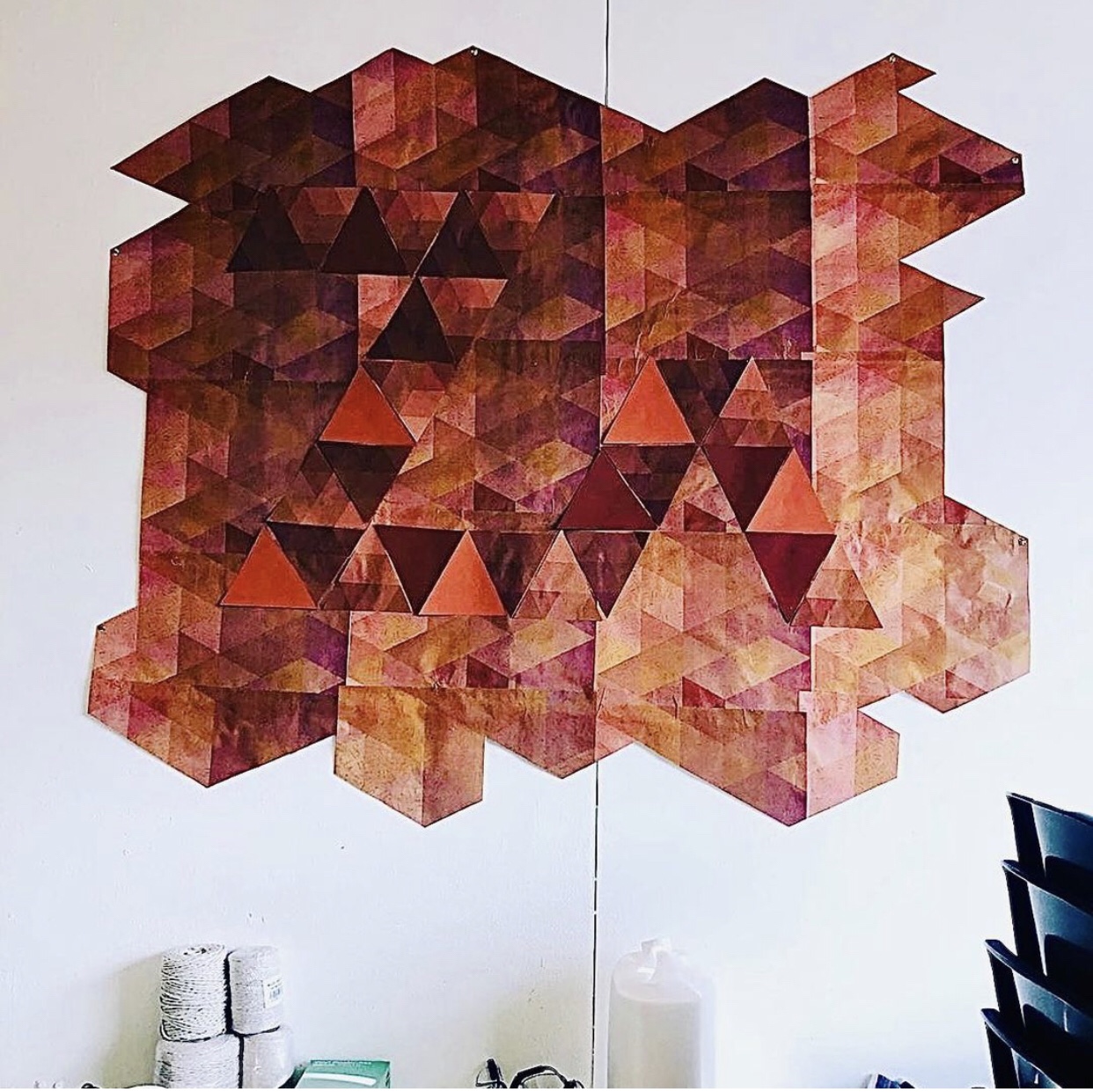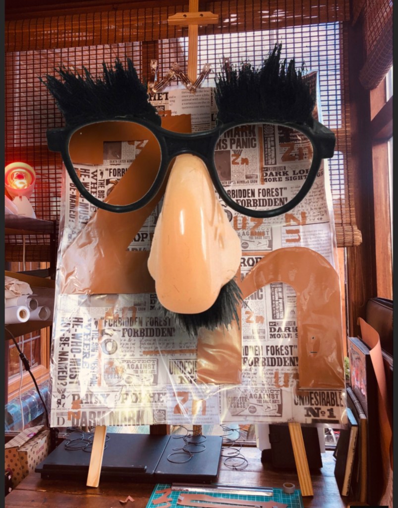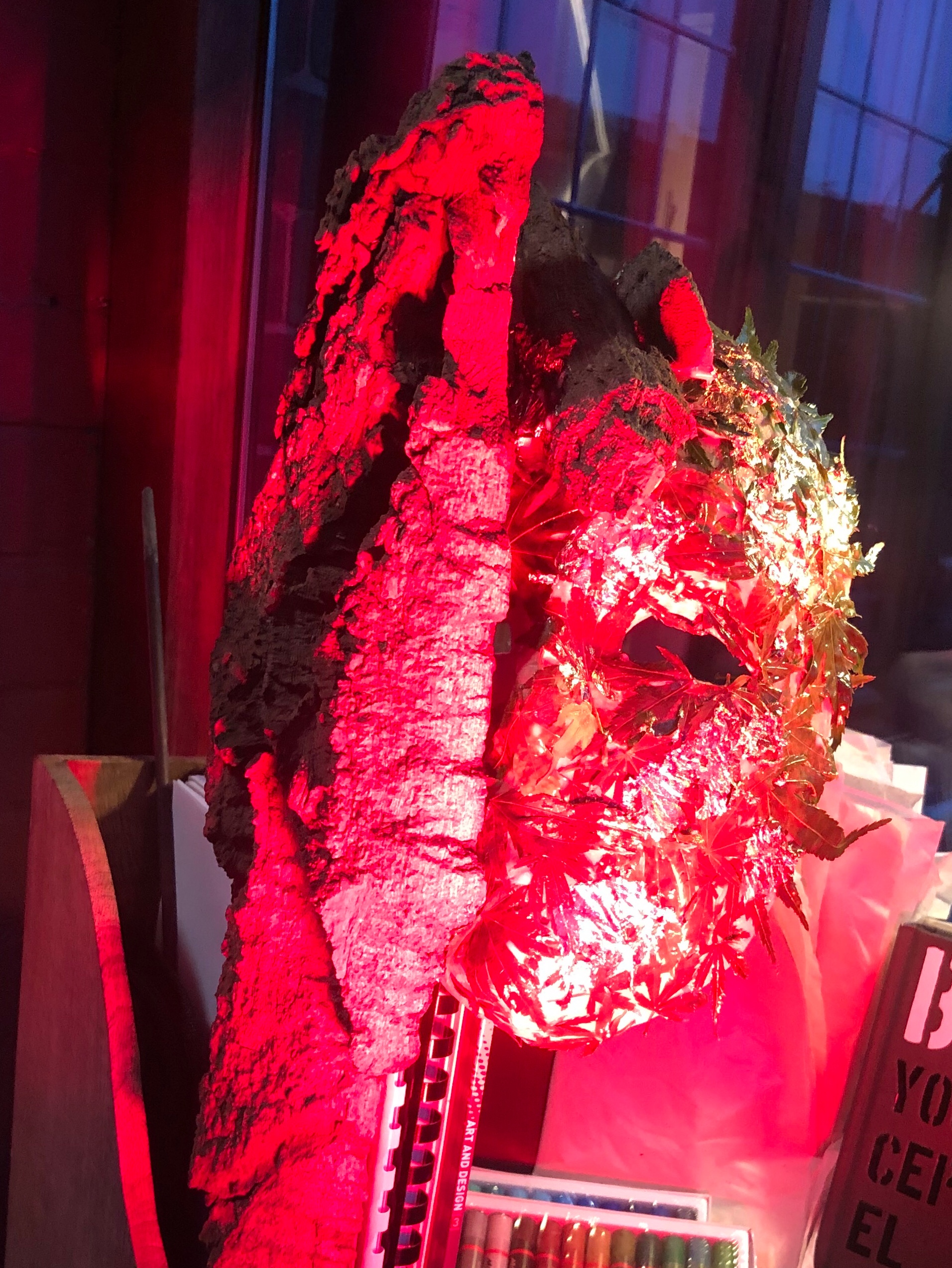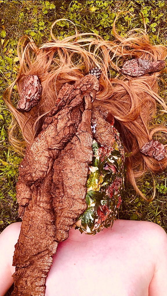 We had fun with the papia mache moulded face shape and then screwed the wood into place. All that was left to do was re-surface it with Acer leaves … i know, I know – they look like something else haha! a little gold leaf to add a bit of sparkle. I hope this reflection on me. love a bit of glamour I do!