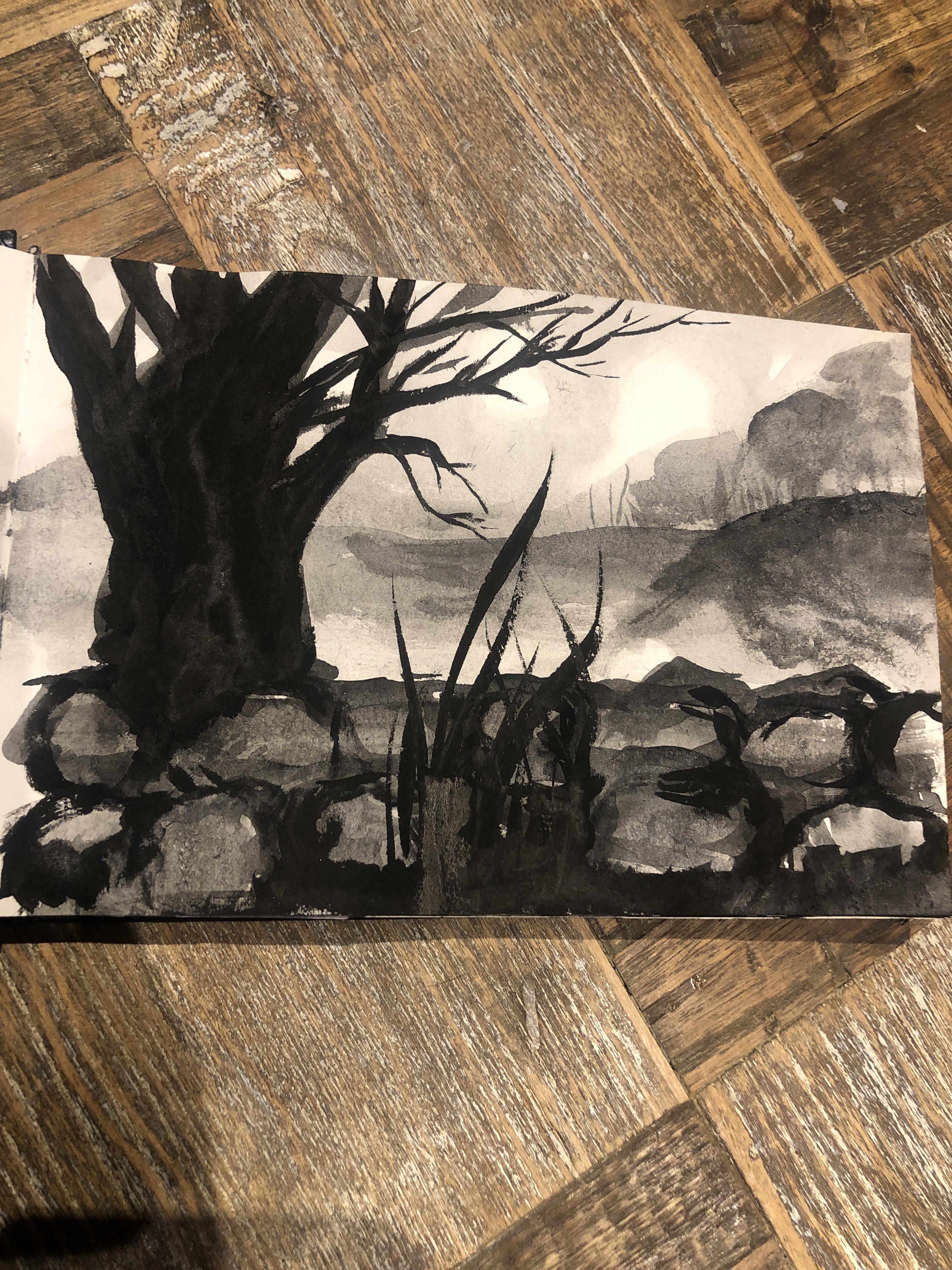 As it happened some of the work I produced that morning really reflected that dreary weather and kind of went hand in hand with the bleeding ink and the dilution of the medium. In Fact it turned out to be one of my favourite briefs. Id never worked with inks before and i feel like ive really fallen for it. I’ve since done a lot more experimentation with it and even done a couple of my own pieces through lockdown!