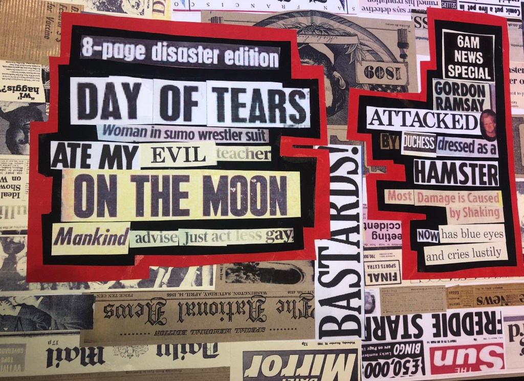 Task – “create your own fake news headlines. Look at the news stories that you have collected. Using Tristan Tzara’s cut up technique, play around with them to create new news – creating a play on words”.