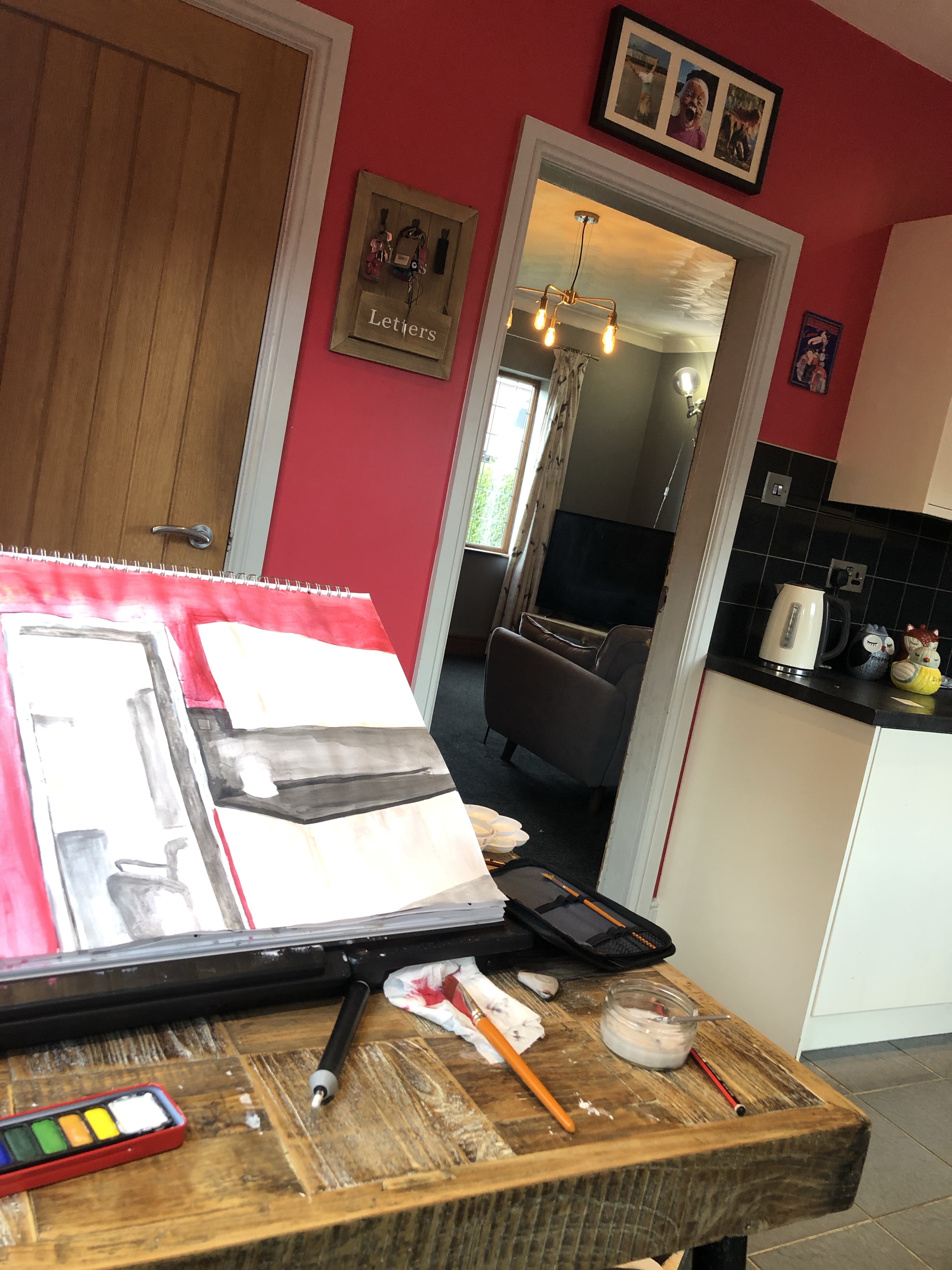 I really enjoyed spending time around the college, both in and out, getting a feel for the place and familiarising myself with this new favourite place of mine. Taking my little bench and making minnie drawings with a close up perspective. It’s a lot different and more energising than just drawing from photos. I was pleased with the work I did for this and I found changing colours up, zooming in and focusing on the less apparent points of objects really interesting. I found that if I tried for accuracy in the initial sketch then it was far easier to then “blow it up”, add depth with colour, twist things around and distort for a lovely and often vibrant effect. There is a lot of beauty in an abstract world when you really look.