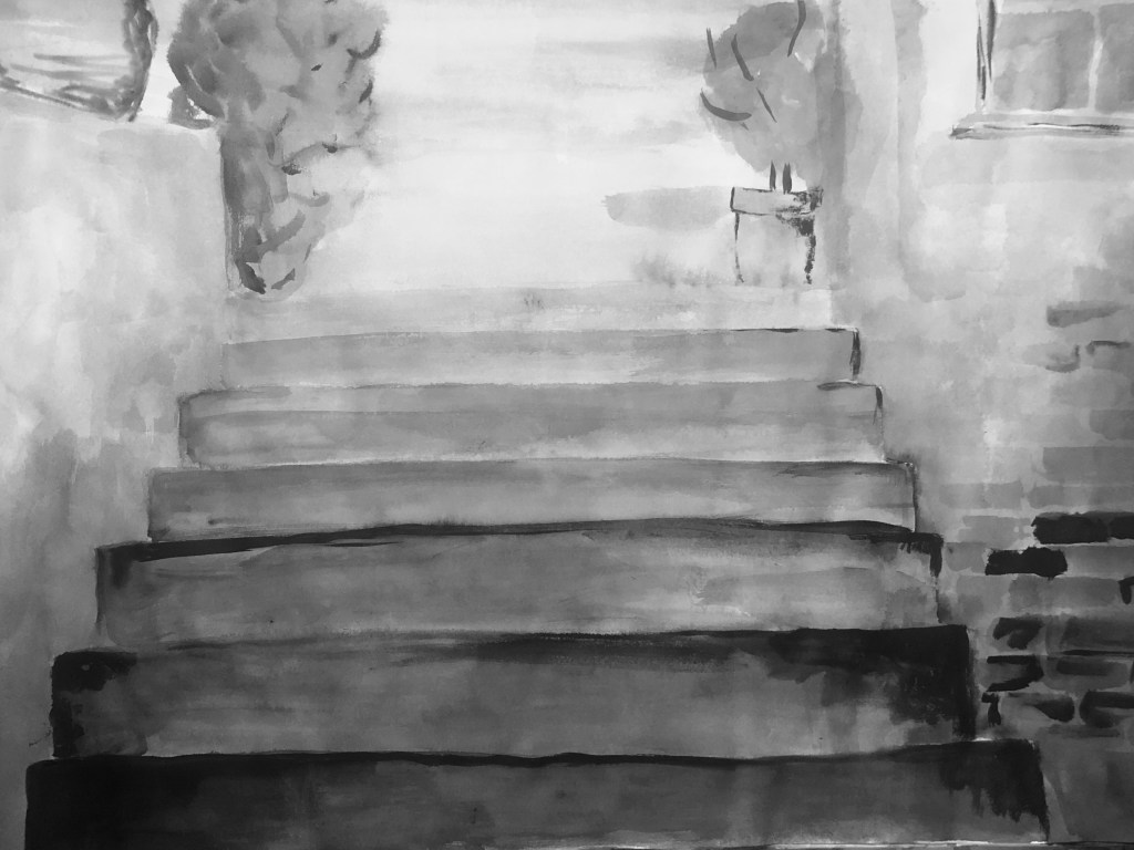 Create 2 x A2 drawings of 2 completely different views. Include some natural forms and some architectural forms. Use a range of tones made from dilute black ink. Remember the rules of Near Mid Far.”