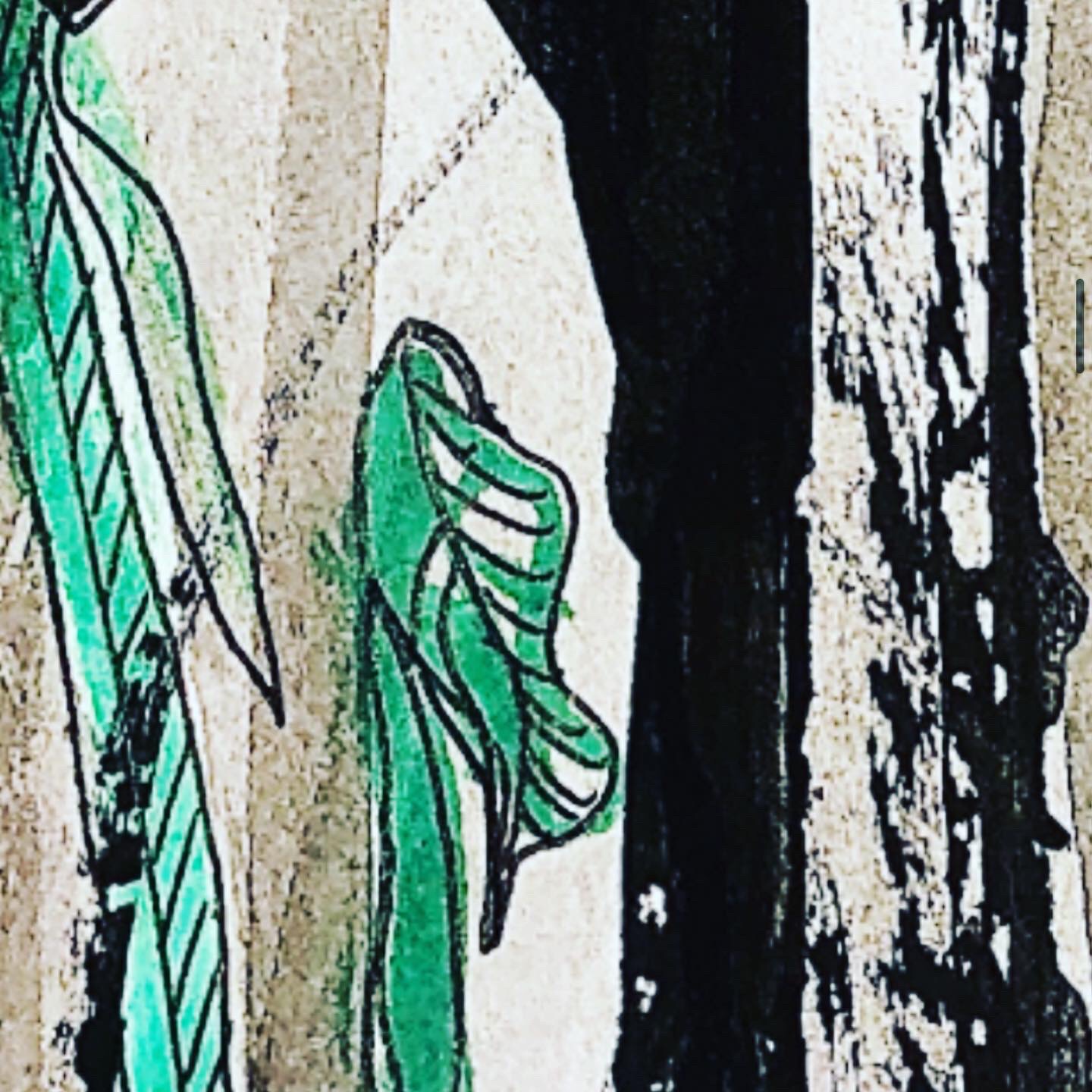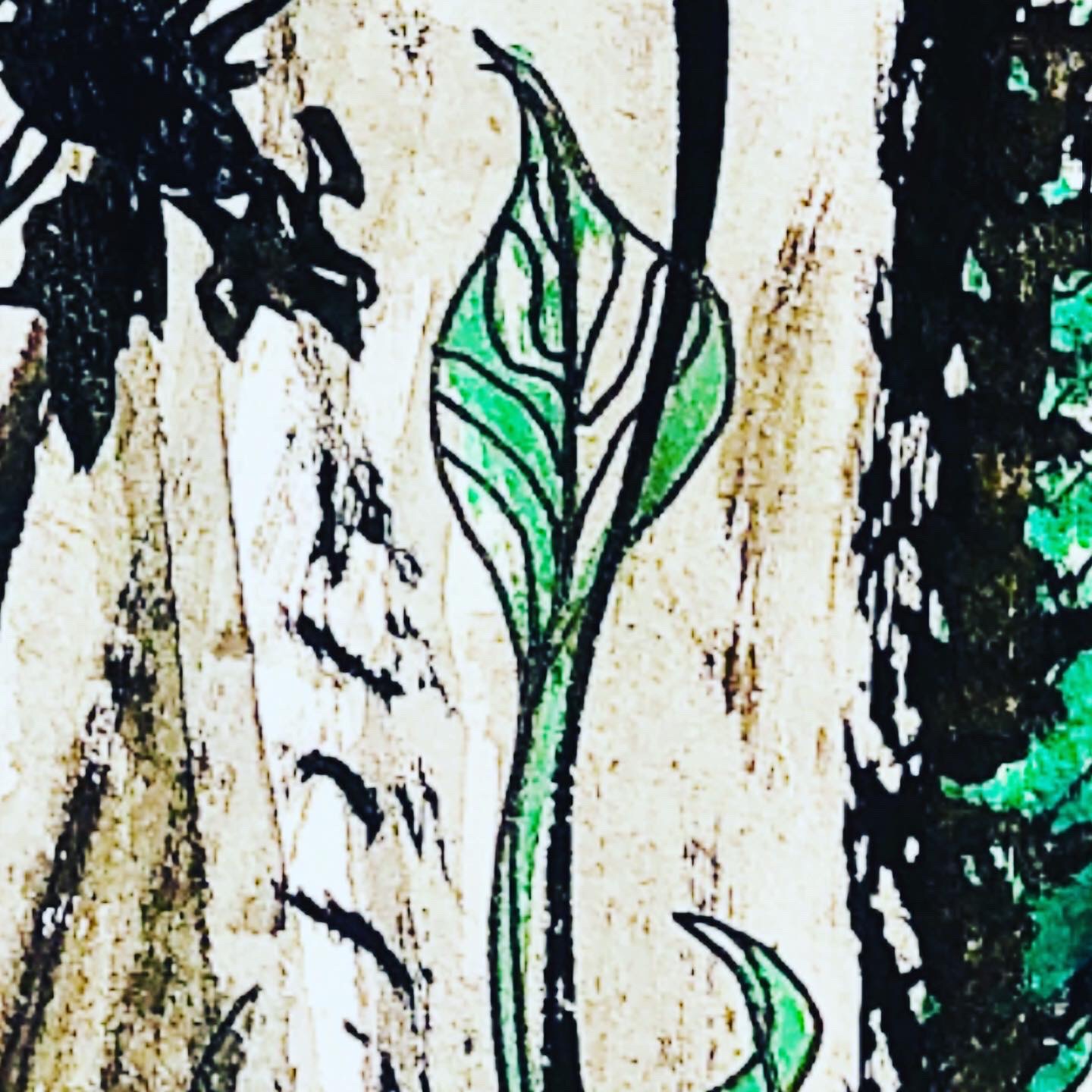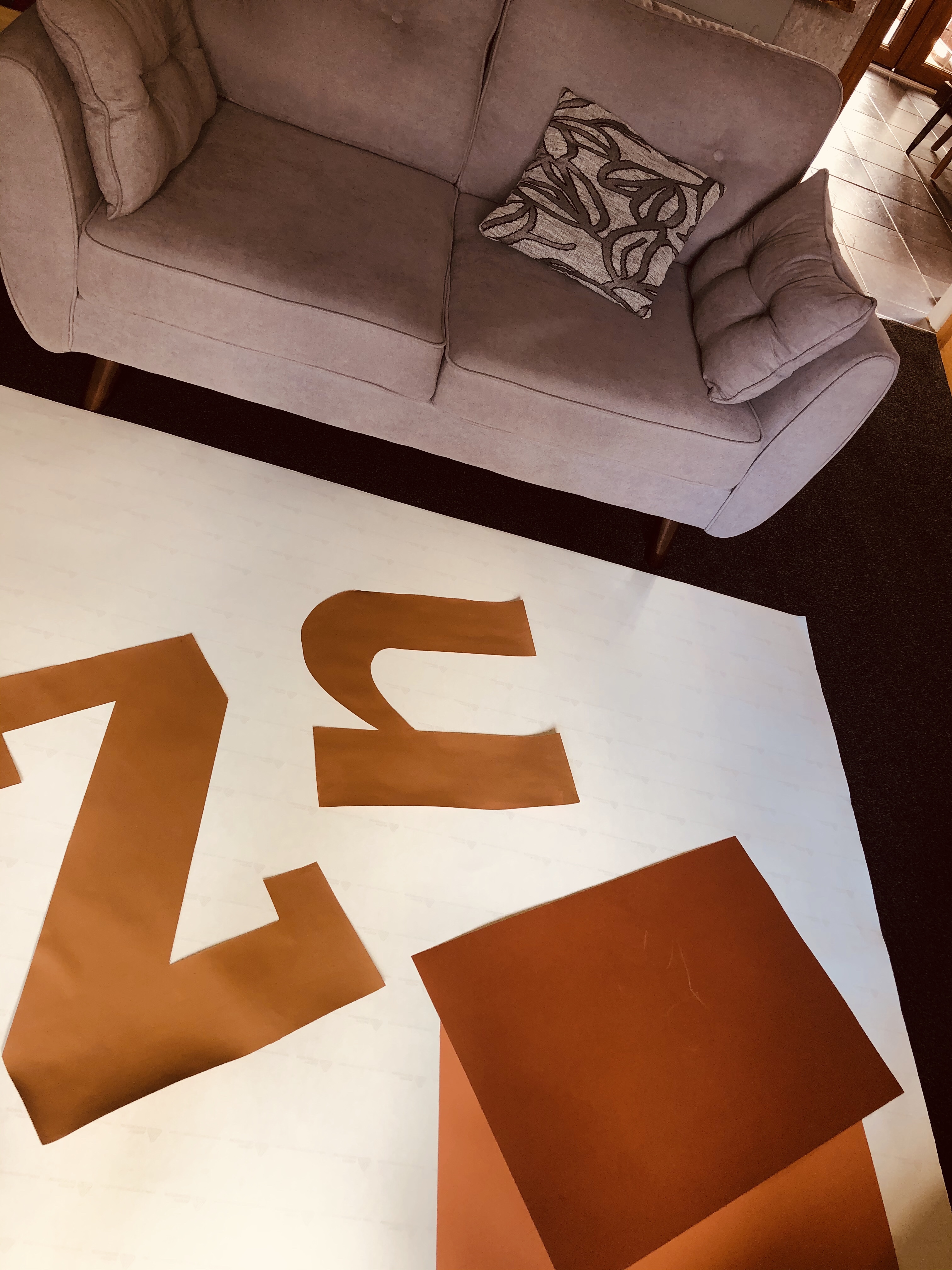 I wasn’t happy and became frustrated so i went back to the drawing board (quite literally!) and chose a more suitable one of my designs. This one being based on the central curve of the number eight (in the collection of numbers i had gathered) and the leaves i had drawn in the ‘Near Mid Socially Distant’, ‘Vertical’ piece. Better!