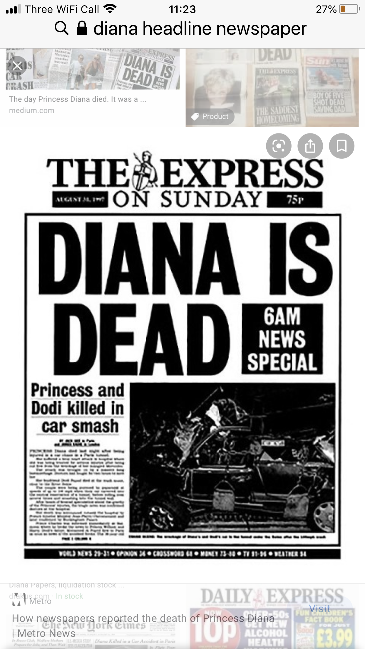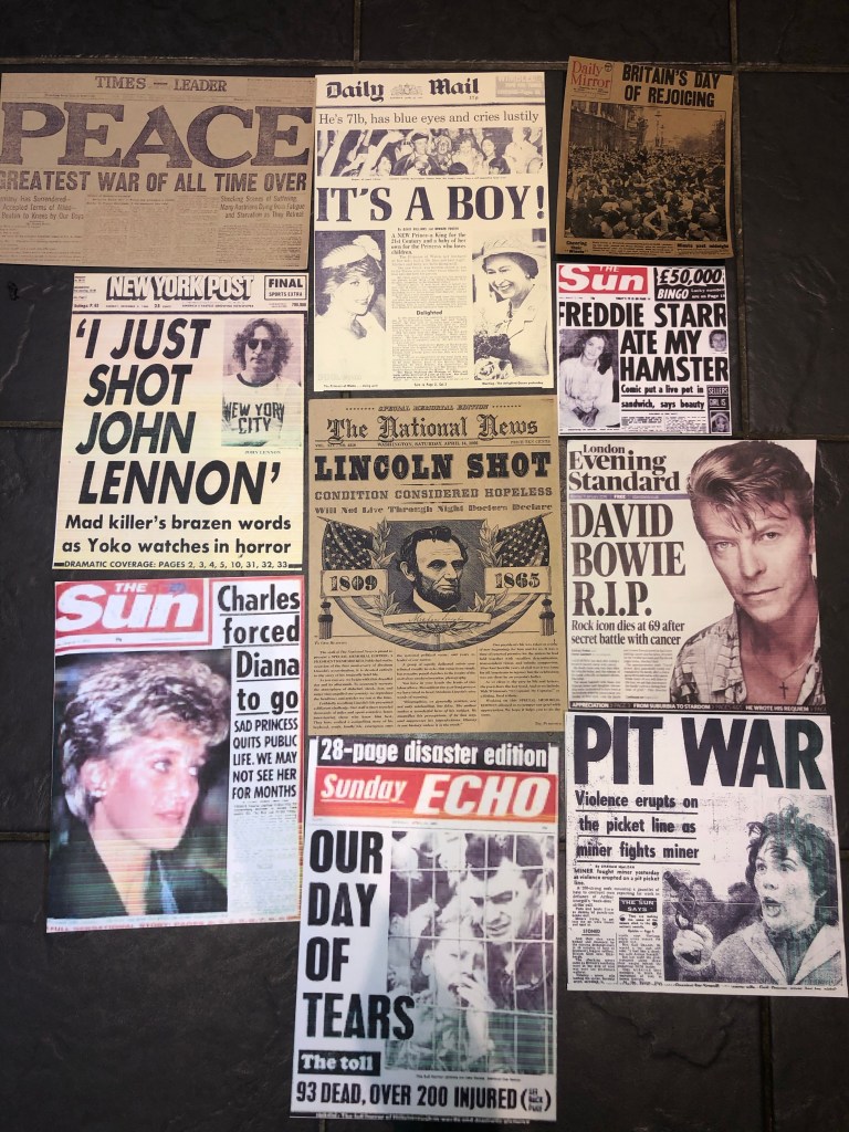 So immediately I recall lots of things I’ve seen in the papers throughout my lifetime. Some I’ve been grown enough perhaps to remember happening, others my parents have spoken to me about and those stories have had an impact on me one way or another. Other clips I’ve chosen are regarding events, broadcasts and celebratory news from a while before my time but are obviously historically important aswell as being important to me. (I know they must be because they were on my brain as I was setting up the printer!)