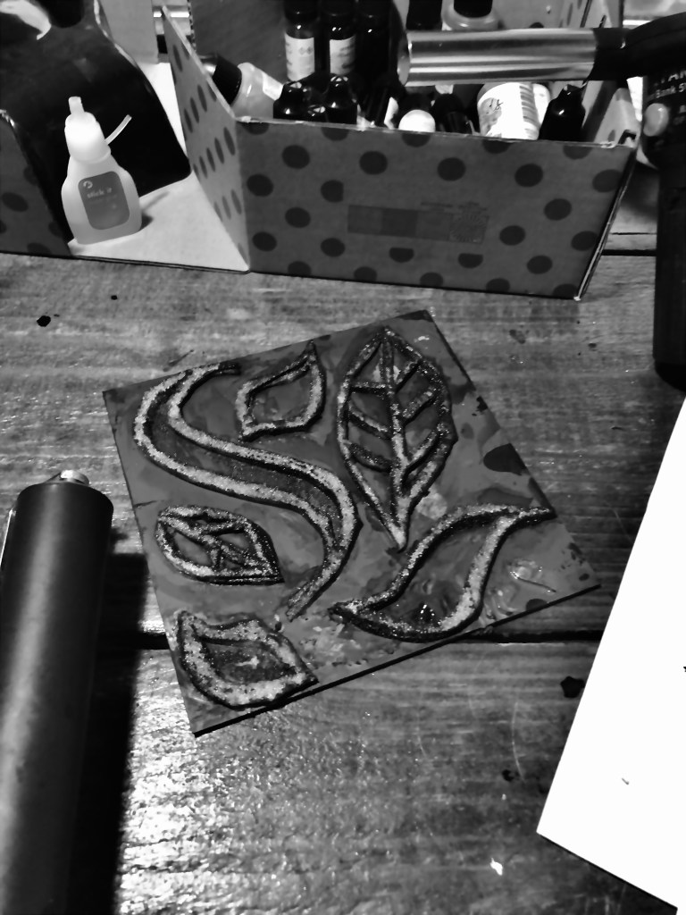 I put down a few prints with what I had but they were terrible – all bubbly and hard to make out. Also i could only really work with one colour in these, because I had only left myself with fine lines, it looked very …pre-school.