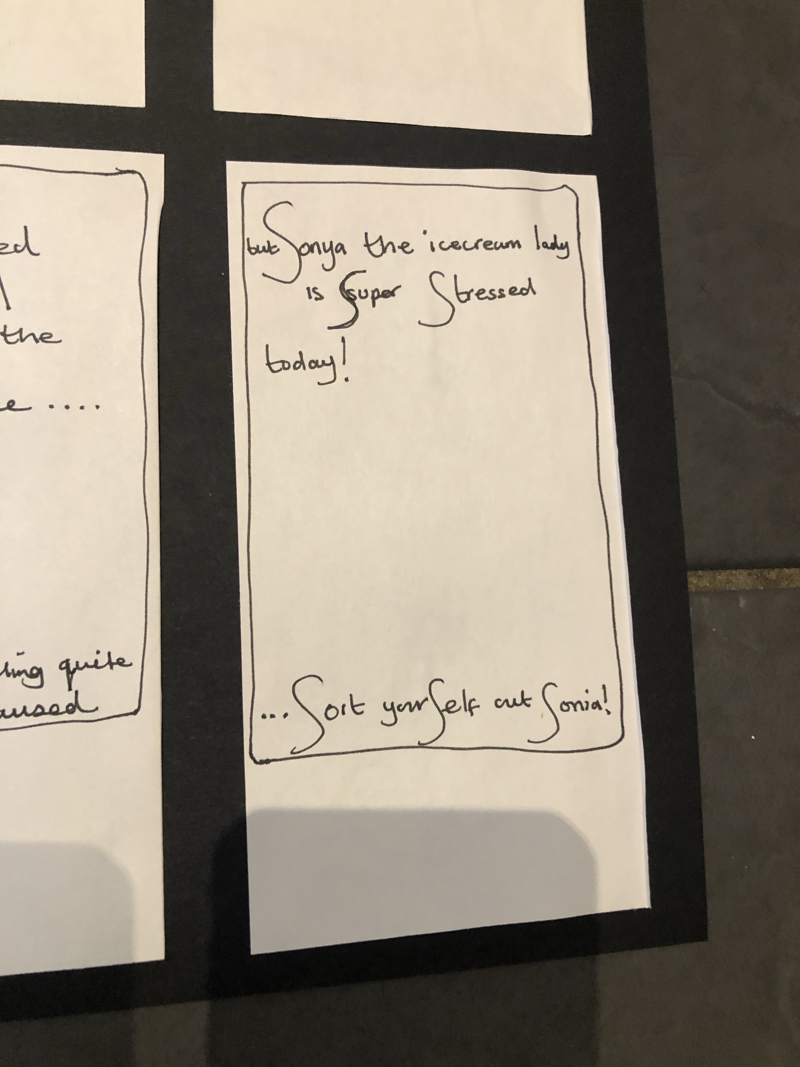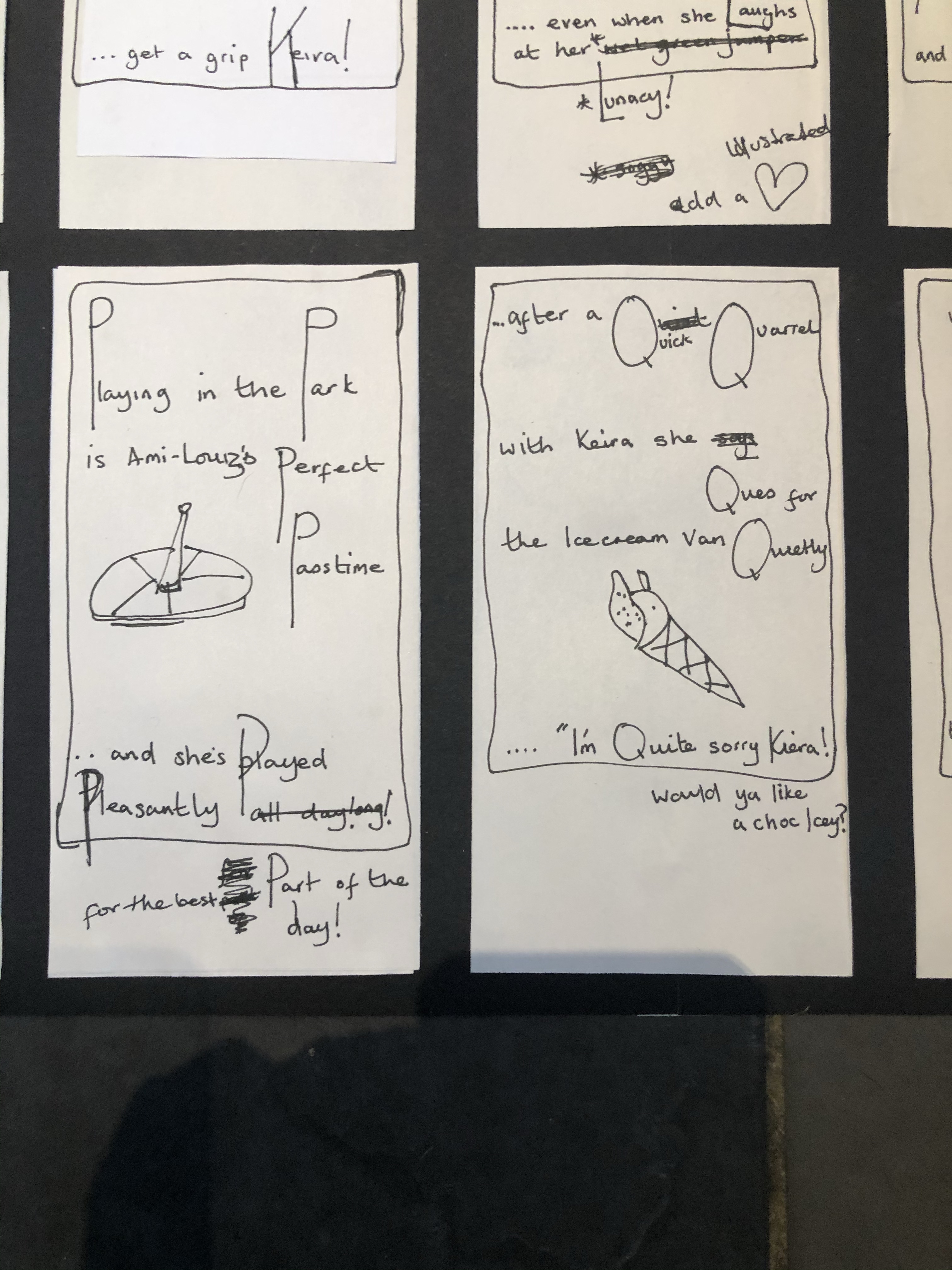 For this brief I chose to go with the ‘Character Study’ theme and quickly produced 20 thumbnails describing a little girl’s day. My page and font will be monotone but fixed with foam tabs and photographed to give a 3D effect on a flat page.