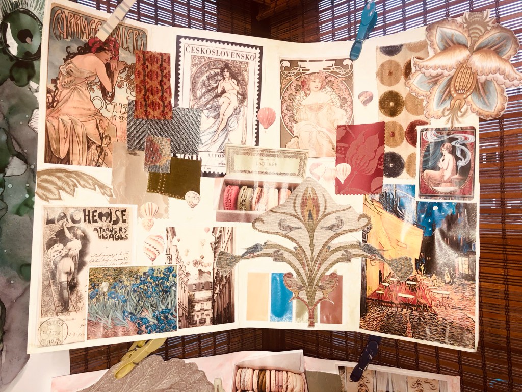 I think i’m a little off curve with the colour scheme here and even though i am enjoying the liberty of experimentation- I’m going to refer back to my mood boards and swim back into those beautiful pastels of parisian vintage!