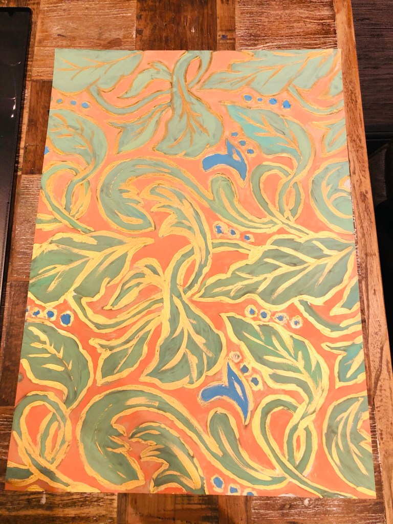 I have loved working on these wallpaper designs… so much so that i made three not two and three versions of each of the three designs. I also managed to get them all printed on A1 rather than A2, as after a discussion with my tutor, Penny, I decided I wasn’t looking to produce a repeat pattern but rather a mural wall covering option. I think this could be something to sway my specialist subject decision.